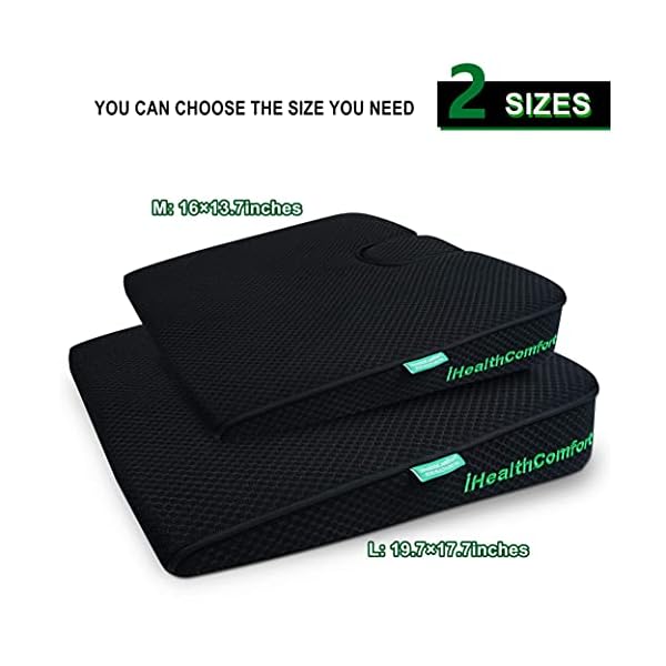 PAIN RELIEF: Cutout section suspends the tailbone, providing relief for the coccyx/tailbone area, eliminated your back pain throughout long drives. Butt will not complain by sitting this added cushion. This wedge seat cushion greatly improves driving experience by reducing pain level. The way it positions you keeps your back at a nice curve, and keeps your legs slanting down so that your weight is more evenly distributed.